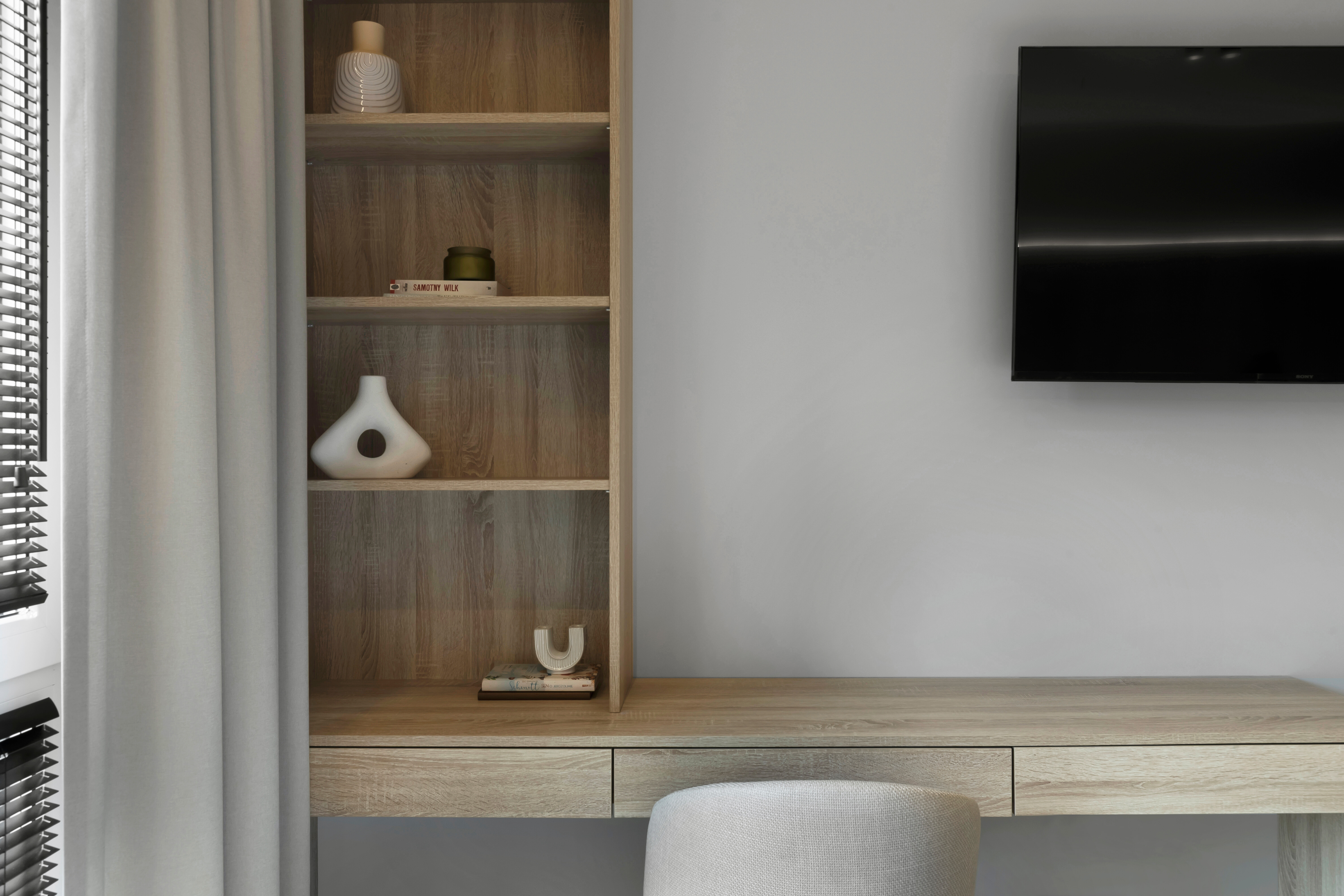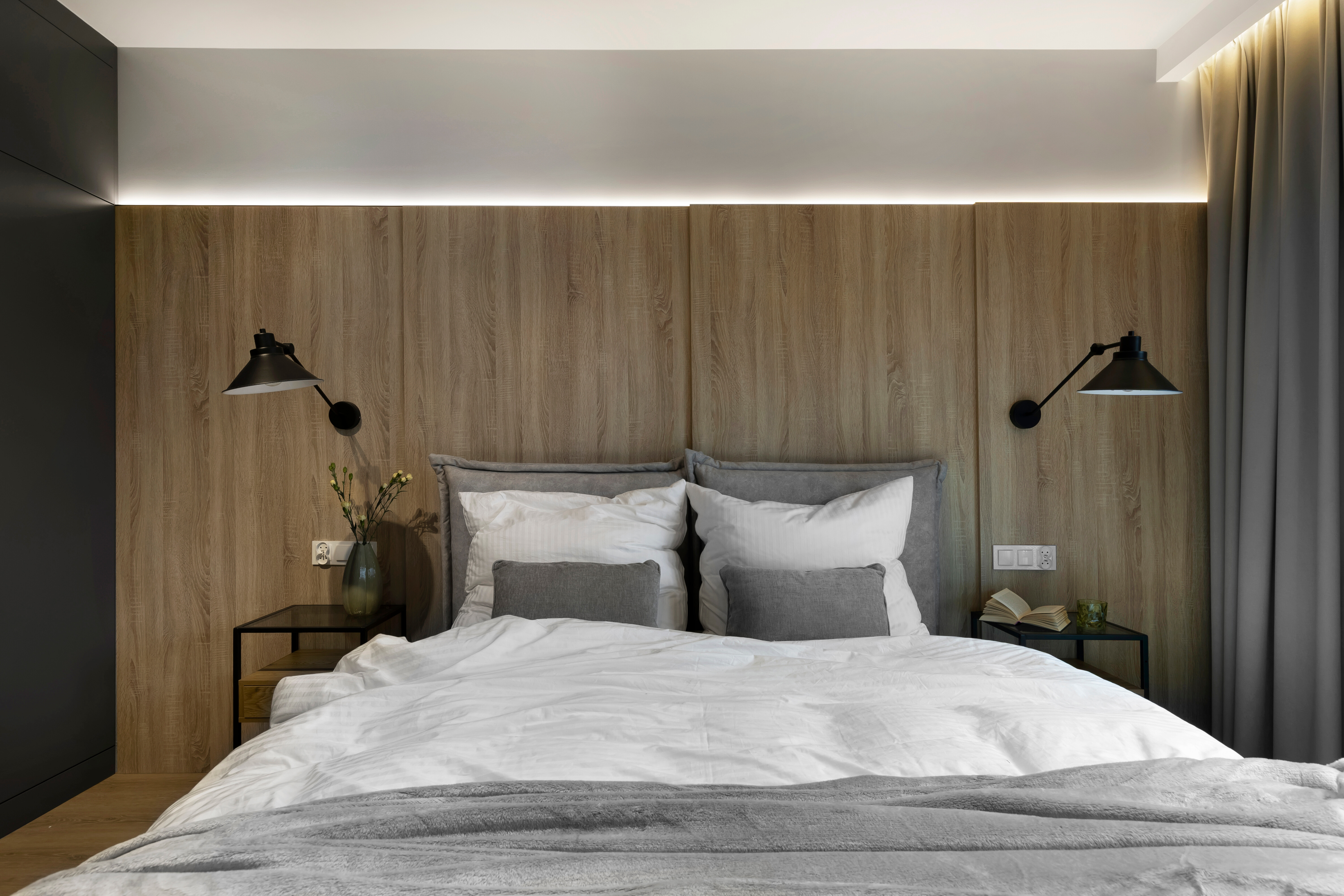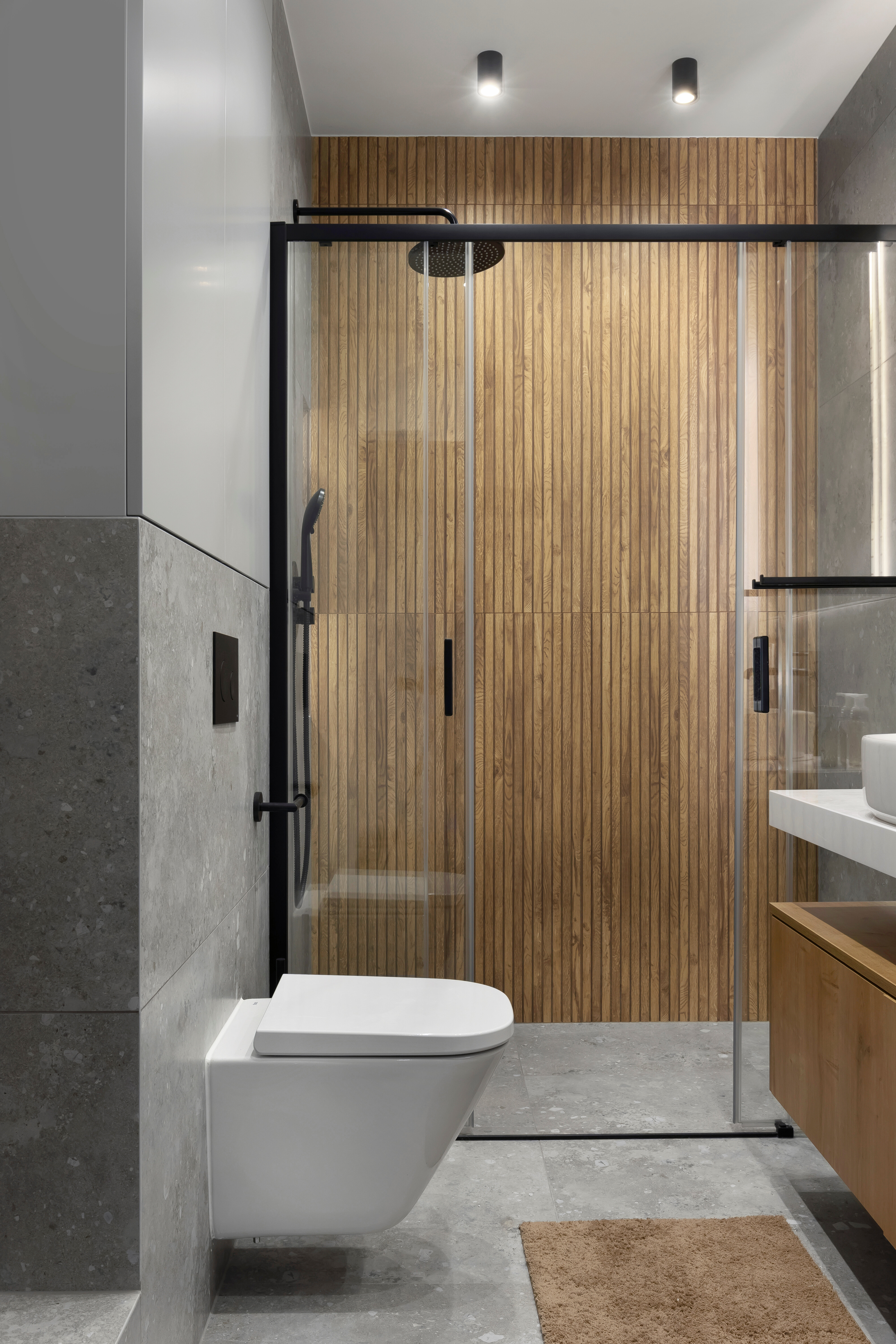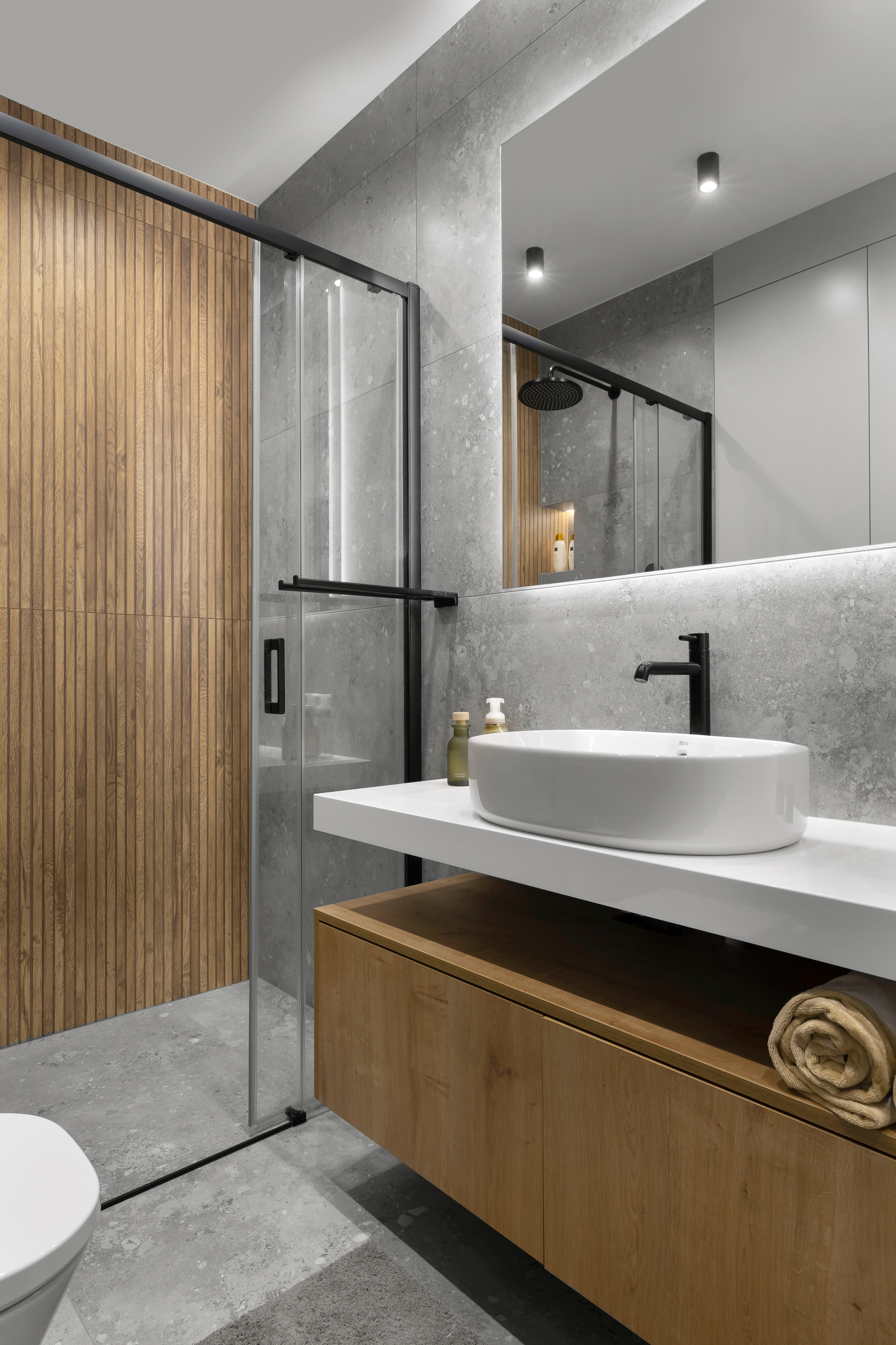 To już piąty projekt dla tych samych Inwestorów! Piąty, z czego każdy był w zupełnie innym stylu... :) Tu postawiliśmy na nowoczesność, ale także przytulność. Całe wnętrze jest monochromatyczne i utrzymane w stonowanych barwach: bieli, szarości, czerni, delikatnych beżów. Pojawia się tu jednak swoisty akcent, jakim jest... oliwkowa kanapa! Taka kolorystyka była marzeniem Inwestorki, które w końcu udało nam się spełnić. Jako, że jest ona dość mocnym elementem,