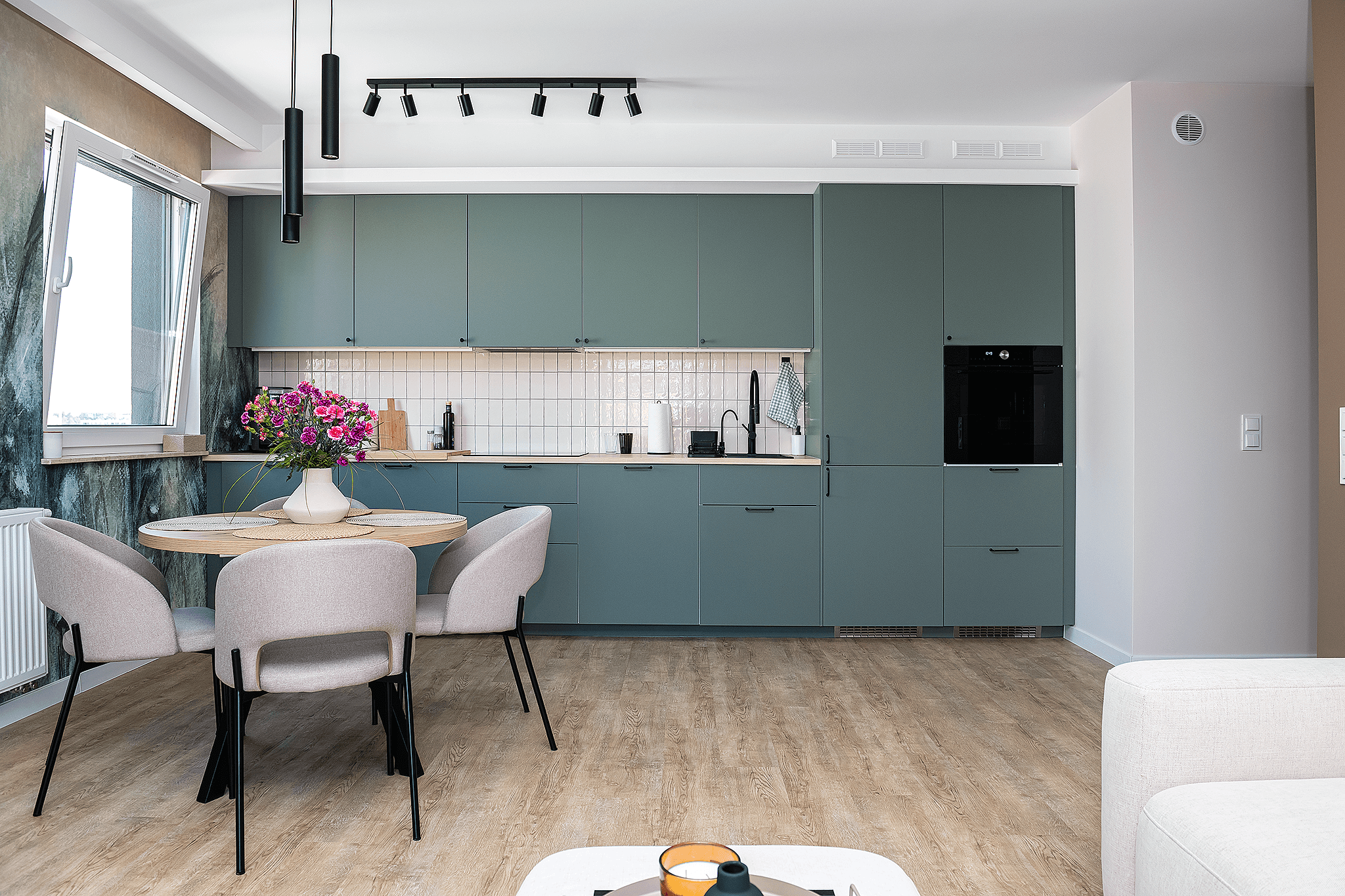 W tej inwestycji zajęliśmy się projektem aranżacji i częściowo wykończeniem mieszkania 3-pokojowego na osiedlu "Urzeka" w Gdańsku. Odbiorcami mieszkania była młoda para, która właściwie w pełni nam zaufała i zgodziła się zrealizować w całości naszą projektową wizję, dając nam uprzednio jedynie kilka wskazówek: że kochają kolorystykę beży, zieleni oraz niebieskiego, które kojarzą im się z Trójmiastem i symbolizują plażę, lasy i morze. Jako, że uwielbiamy pracę z kolorem, bardzo chętnie wykorzystaliśmy wszystkie wskazania Inwestorów! Tak powstało wnętrze ciepłe, domowe i przytulne, ale jednocześnie oryginalne i z pazurem. Ciekawy klimat osiągnęliśmy poprzez łączenia różnych kolorów, ale także podkręciliśmy go dzięki doborze nietuzinkowych tapet. Dzięki temu - co wiemy z pierwszej ręki - mieszka się tu bardzo dobrze, a zaproponowane przez nas rozwiązania okazały się niezwykle praktyczne i sprawdziły się w codziennym życiu.