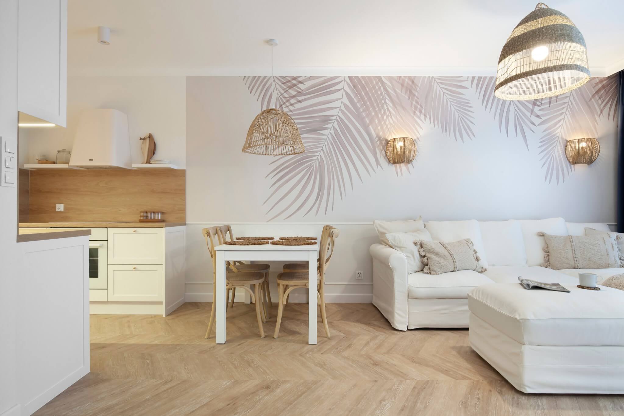Mieszkanie zaprojektowane zostało jako letni apartament jego właścicieli. Niewielka odległość od plaży narzuciła nam przytulny i sielski klimat, w którym odnaleźliśmy się w stu procentach!