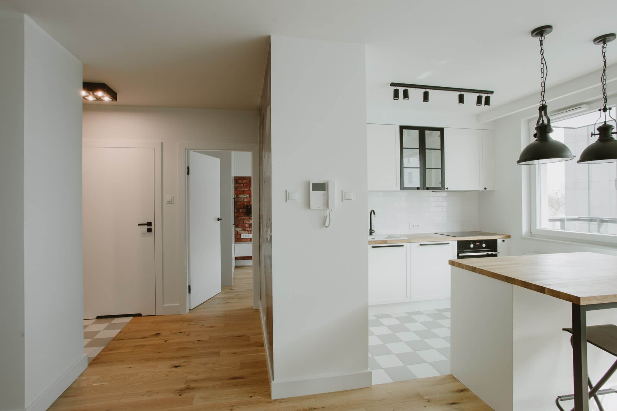 Projekt aranżacji wnętrza mieszkania 2-pokojowego w inwestycji Harmonia Oliwska w Gdańsku. Mieszkanie przygotowane zostało dla pary studentów, którzy przyjechali do nas aż z Leszna. Dominuje tutaj jasna kolorystyka w odcieniach bieli, zestawiona z naturalnym drewnem dębowym. Pojawiają się tutaj jednak także odważne akcenty z naturalnej, rozbiórkowej cegły.